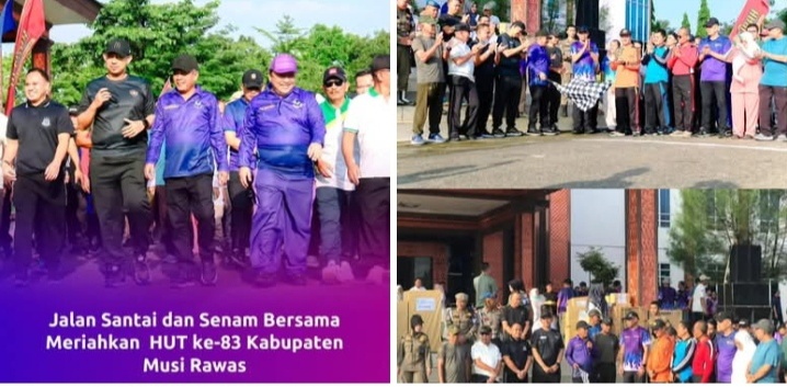 KABUPATEN MUSI RAWAS SUMATERA SELATAN,,kegiatan jalan santai dan senam bersama yang berlangsung di halaman Kantor Bupati Musi Rawas.Kegiatan ini dihadiri oleh Wakil Bupati Musi Rawas, Sekretaris Daerah Kabupaten Musi Rawas, para Asisten dan Staf Ahli Bupati, Kepala Organisasi Perangkat Daerah (OPD) beserta jajaran, serta masyarakat Kabupaten Musi Rawas yang tampak antusias mengikuti rangkaian acara. Sejak […]