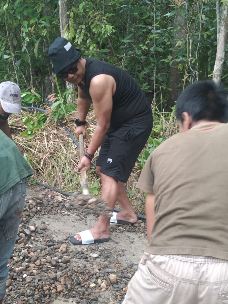 suatu penyemangat warga desa,kepala desa pun terjun ikut serta bekerja di bantu pula dengan staf-staf desa.
