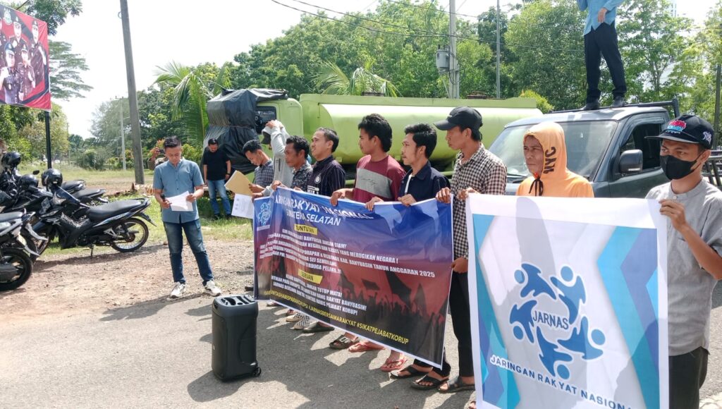 🇮🇩BANYUASIN, SMSI ( sibermediasumateraindobesia. Com) Jaringan Rakyat Nasional (JARNAS) Sumatera Selatan, bersama rakyat Banyuasin kembali turun kejalan, Selasa 23 September 2025.