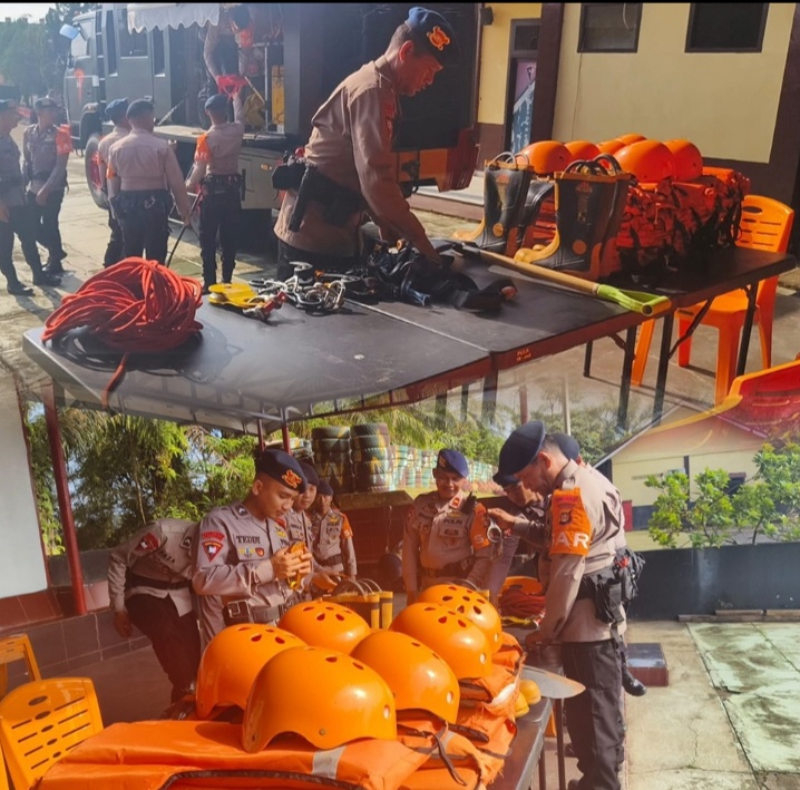 LUBUKLINGGAU — Menghadapi potensi bencana alam akibat meningkatnya intensitas curah hujan, Satbrimob Polda Sumatera Selatan Batalyon B Pelopor melaksanakan kegiatan Siaga SAR di Markas Komando Batalyon B Pelopor, Rabu (24/12/2025).