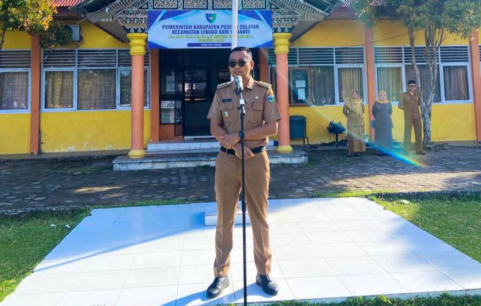 Camat Linggo Sari Baganti, Zul Irvan Harun, S.STP, bertindak langsung sebagai Pembina Apel. Dalam amanatnya di depan ratusan aparatur, ia menyoroti bahwa tahun 2026 harus menjadi era transformasi pelayanan yang jauh lebih responsif dan saling terintegrasi antar-lembaga.