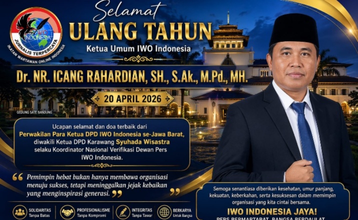 Momen tersebut terjadi dalam rangka peringatan hari ulang tahun Ketua Umum IWO Indonesia, Dr. NR. Icang Rahardian, SH., S.Ak., M.Pd., MH, yang jatuh pada 20 April 2026.